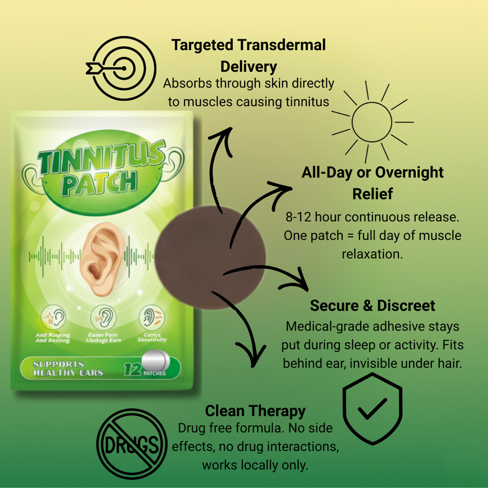 Stress-induced tinnitus: Chronic stress causes muscle tension throughout your neck and jaw (even if you don't realize it). The patches target this hidden tension that amplifies your ringing.